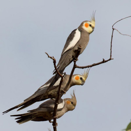 Description : Cockatiels are native to Australia, also known as weiro bird, or quarrion. They are found largely in arid or semi-arid country, but always close to water. They are good whistlers and mimics. They feed on vegetables, fruits, grains, and seeds.