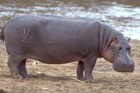Description : The name Hippopotamus comes from the Ancient Greek ‘river horse’. Hippos bask on the shoreline and secrete an oily red substance, which gave rise to the myth that they sweat blood. The liquid is actually a skin moistener and sun block that may also provide protection against germs. An adult Hippo needs to resurface every 3 – 5mins to breathe. They are only territorial while in the water. Both reproduction and birth occur in the water. The hippopotamus is one of the most aggressive creatures in the world and one of the most dangerous animals in Africa.