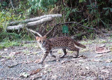 Description : The leopard cat is a small wild cat native to continental South, Southeast and East Asia. Leopard cats are solitary, except during breeding season, Leopard cats are nocturnal animals (active during the night). They are carnivorous, feeding on a variety of small prey including mammals, lizards, amphibians, birds and insects.