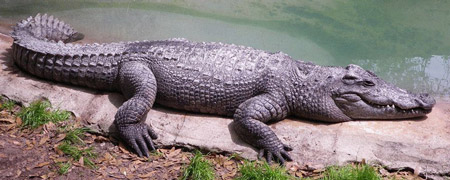Description : Siamese crocodile is a small to medium-sized freshwater crocodile native to Indonesia , Brunei, East Malaysia, Laos, Cambodia, Myanmar, Thailand and Vietnam. The species is critically endangered. Feeds mainly on fish and snakes, but also eat amphibians and small mammals. Females build mound-nests constructed from scraped-up plant debris mixed with mud.